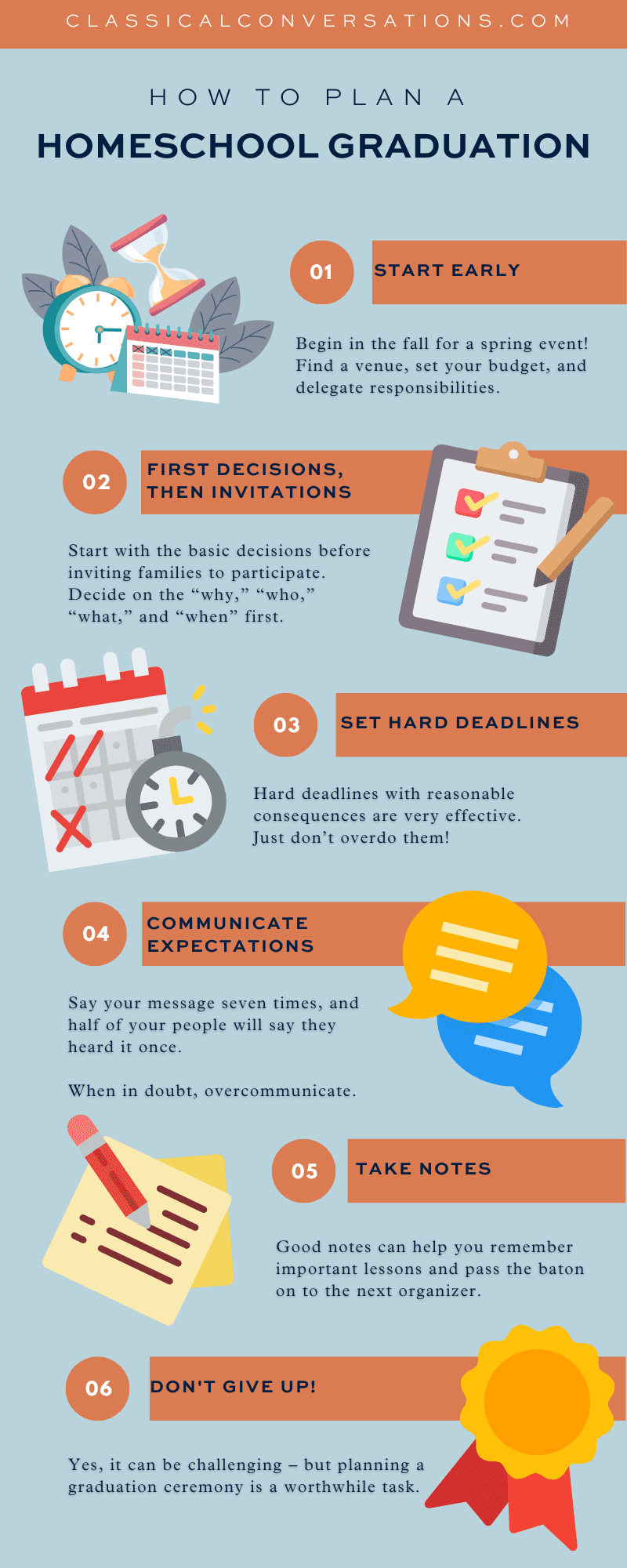 Over the years, we’ve assisted hundreds of homeschool graduation planners, and we’ve asked about their experiences and observed a few key behaviors that consistently lead to success. Here’s what we’ve learned.
